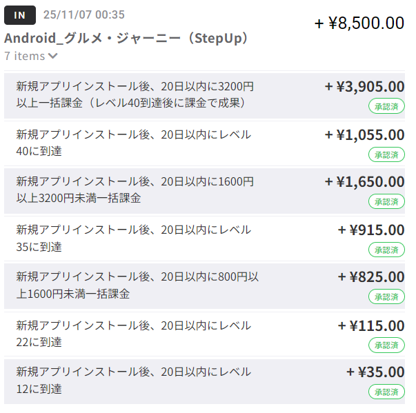 課金をするとプラスになる条件だったので、課金してみた。承認されたが、課金が承認されなかったらストレスが物凄そうなので、成果調査を受け付けていなかったらやめたほうが良さそう。